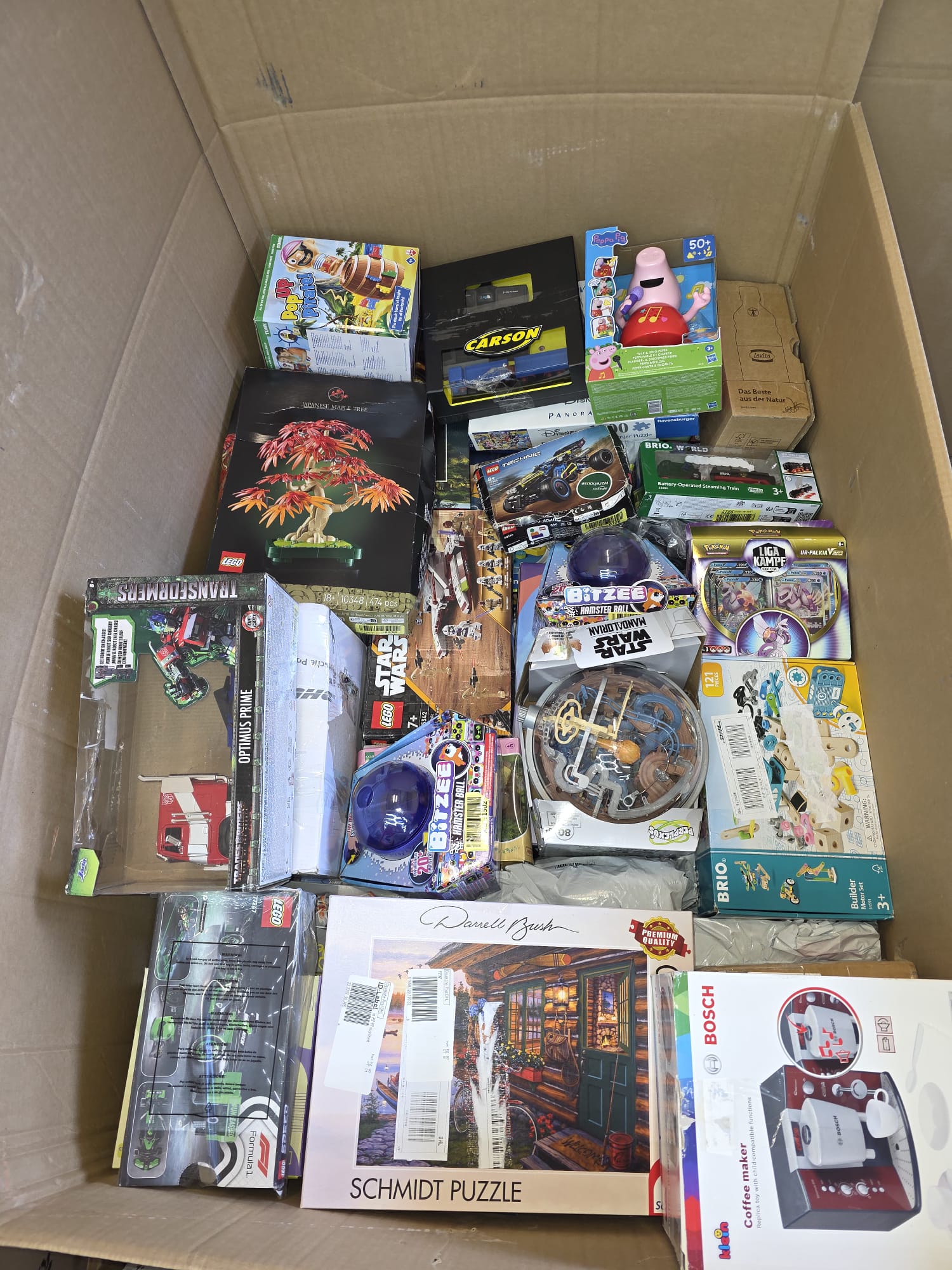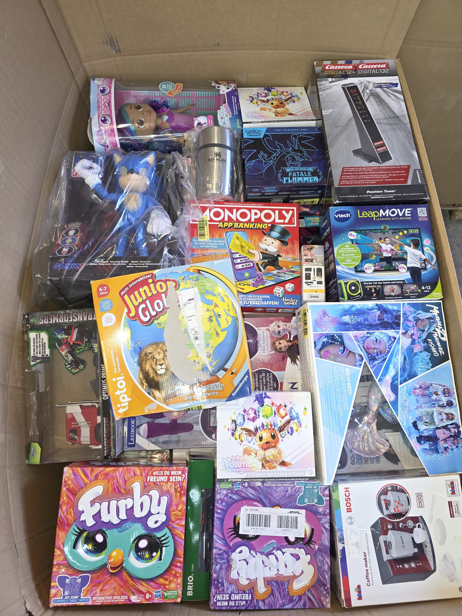 Zum Verkauf steht eine Mischpalette mit Spielwaren aus Amazon-Retourenprozessen.